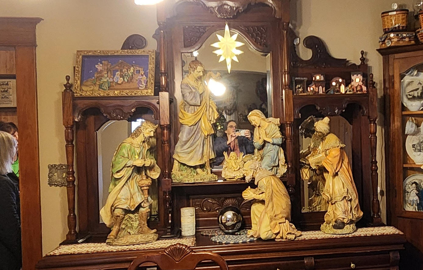 For the tour, the Lessens had a large Christmas tree, Nativity set