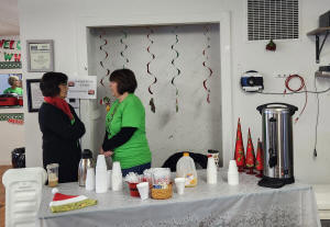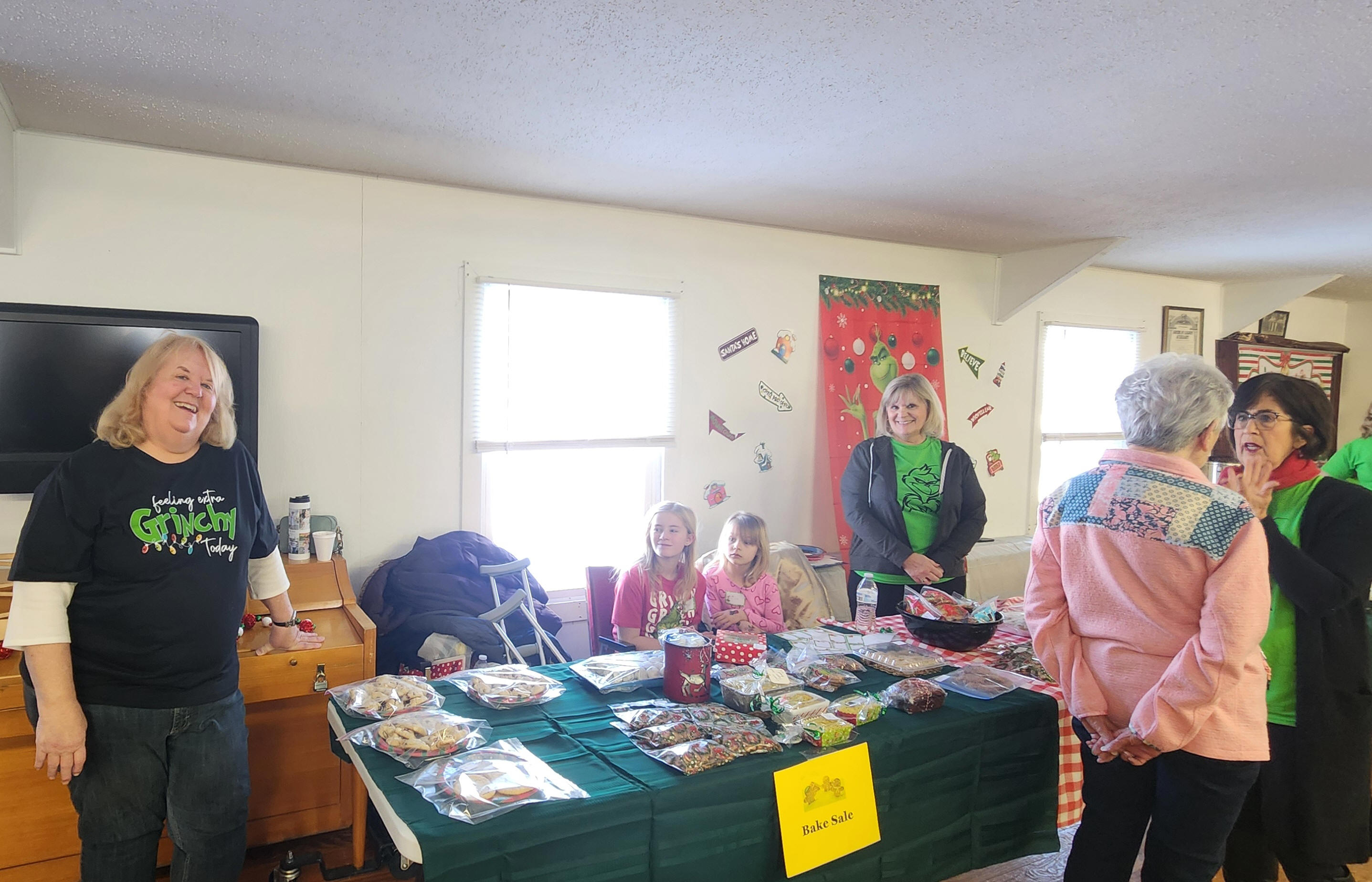 Throughout the morning, many people came in to enjoy breakfast, visit Santa and the Grinch and buy baked goods.