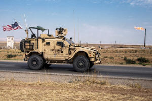 U.S. forces patrol oil fields in Syria, Oct. 28, 2019 . (AP Photo/Baderkhan