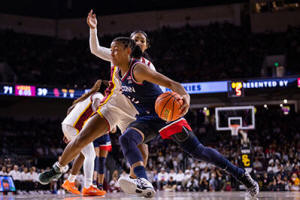 UConn guard Kk Arnold (2) drives the ball against Southern California