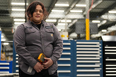 Liz Cardenas poses for a photo at a training area in a Walmart