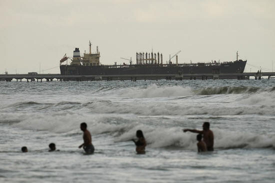 Evana, an oil tanker, is docked at El Palito port in Puerto Cabello,