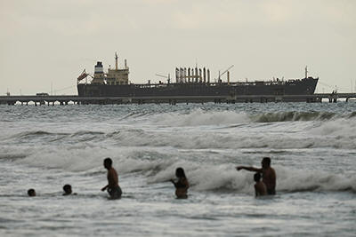 Evana, an oil tanker, is docked at El Palito port in