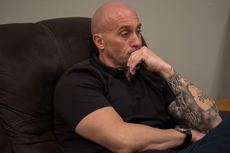 Joseph "Tucker" Daniels listens to lawyers at his home in Thibodaux,
