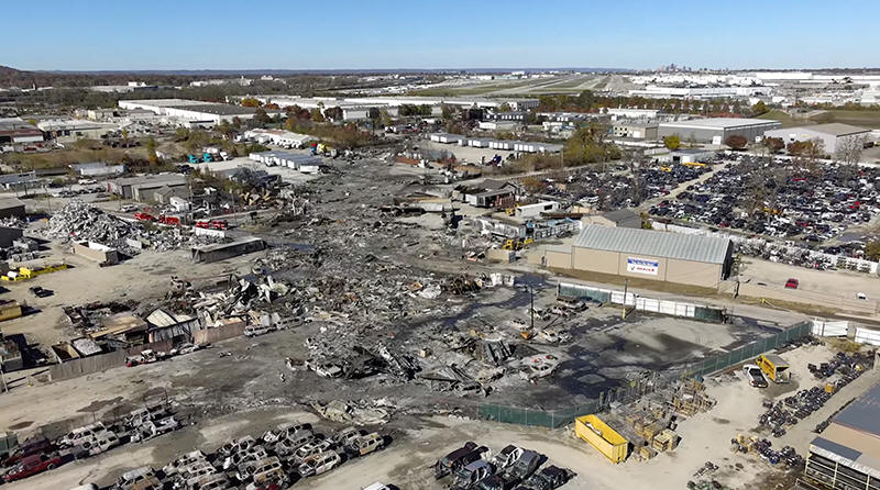 shows UPS plane crash scene on Nov. 6, 2025 in Louisville, Ky. (NTSB