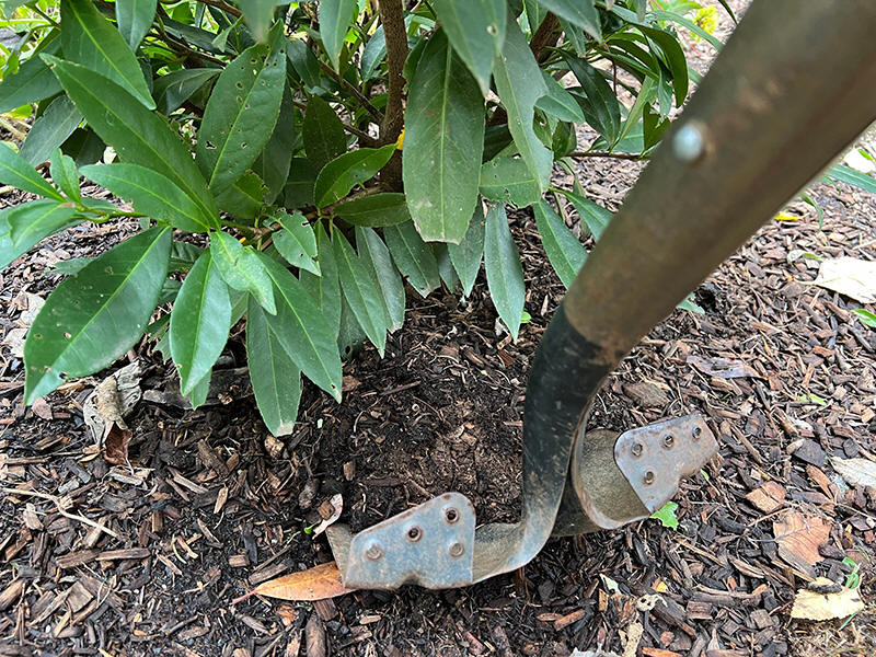 sharp-edged shovel into the soil at what you estimate to be the roots’