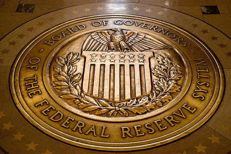 In this Feb. 5, 2018, file photo, the seal of the Board of Governors