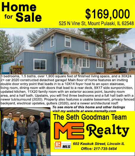 All real estate advertised in the Lincoln Daily News is subject to the Fair Housing Act for 1968 which makes it illegal to advertised "any preference, limitation, or discrimination based on race, color, religion, sex or national origin, or intention to make special preference, limitations, or discrimination."