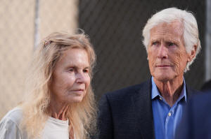Suzanne Morrison, mother of Matthew Perry, walks into court with her