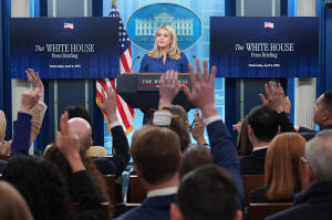 White House press secretary Karoline Leavitt speaks with reporters