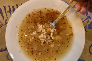 A bowl of the soup is usually prepared to the customer’s liking,