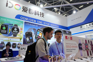 watches at the Canton Fair, in Guangzhou, in southern China's