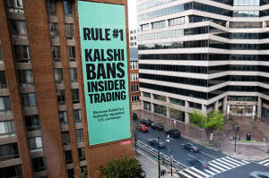 An advertisement for prediction market platform Kalshi hangs at 13th
