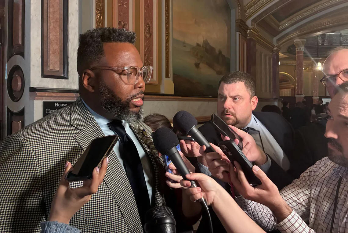 Rep. Kam Buckner, D-Chicago, updates reporters about a megaprojects