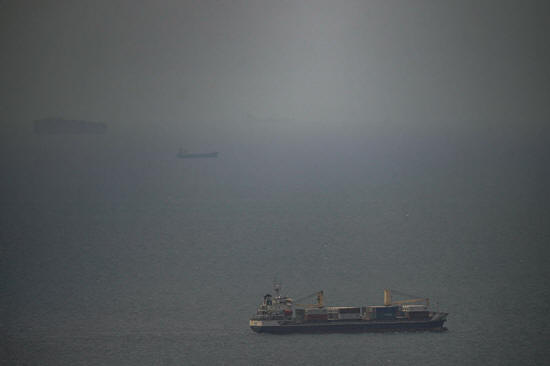A cargo ship sails in the Persian Gulf toward the Strait of Hormuz, Wednesday, April 22, 2026. (AP Photo)