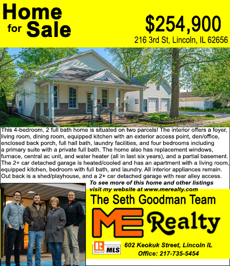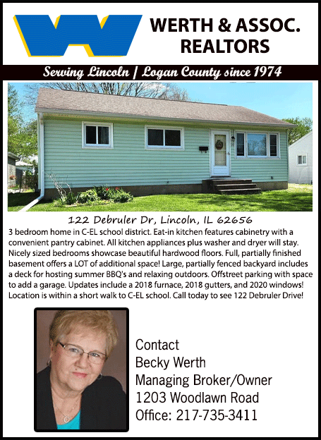 All real estate advertised in the Lincoln Daily News is subject to the Fair Housing Act for 1968 which makes it illegal to advertised "any preference, limitation, or discrimination based on race, color, religion, sex or national origin, or intention to make special preference, limitations, or discrimination."