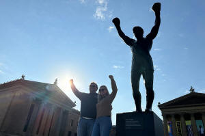 Visitors pose in front of the Rocky statue at the Philadelphia