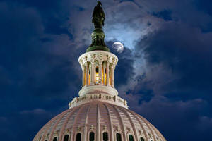 The moon emerges from the clouds over the U.S. Capitol dome in