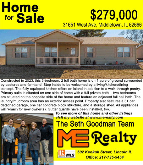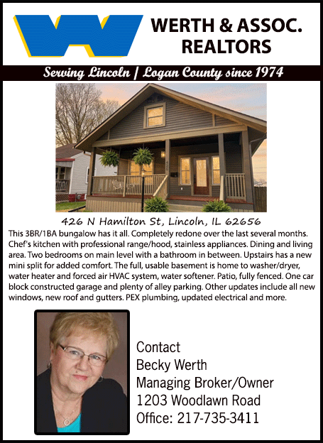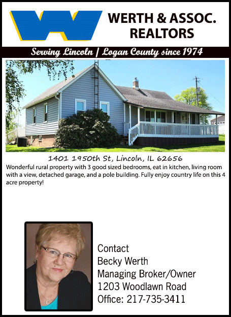 All real estate advertised in the Lincoln Daily News is subject to the Fair Housing Act for 1968 which makes it illegal to advertised "any preference, limitation, or discrimination based on race, color, religion, sex or national origin, or intention to make special preference, limitations, or discrimination."