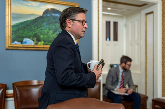Speaker of the House Mike Johnson, R-La., walks through the House