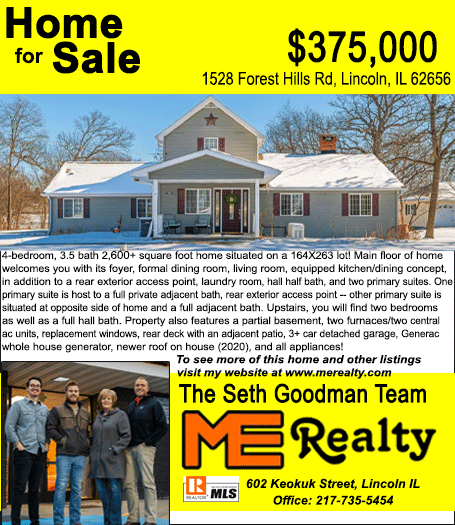 All real estate advertised in the Lincoln Daily News is subject to the Fair Housing Act for 1968 which makes it illegal to advertised "any preference, limitation, or discrimination based on race, color, religion, sex or national origin, or intention to make special preference, limitations, or discrimination."