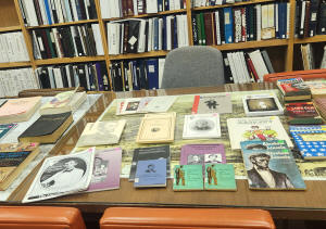 Several books about Abraham Lincoln set out on tables for people to look over were available for purchase.