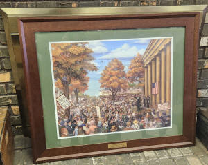 Near the front of the building was a painting of Lincoln delivering a speech on October 16,1858 as part of his campaign for United States Senate when he was running against Stephen Douglas.