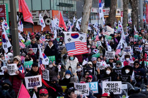 Supporters of former South Korean President Yoon Suk Yeol stage a