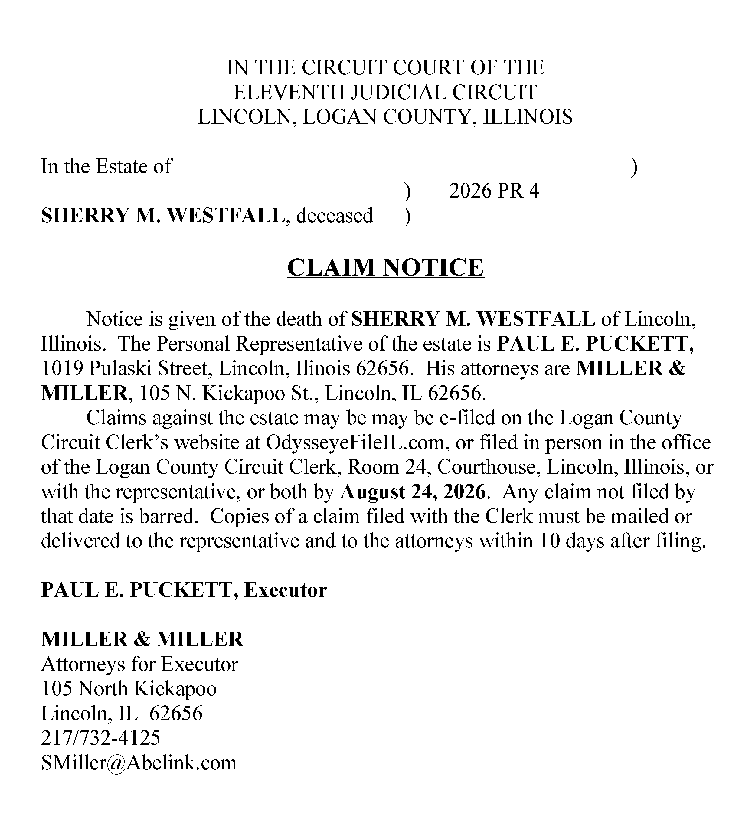 Tracey Rawlings, P.O. Box 178, New Holland, IL 62671.