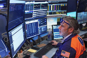 Trader John Romolo works on the floor of the New York Stock