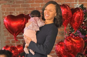 Detroit Mayor Mary Sheffield holds child during an announcement of