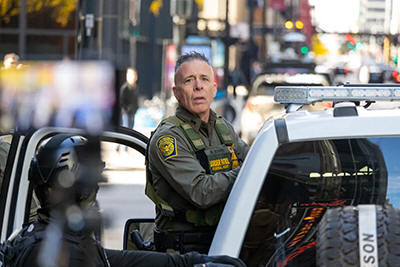 Border Patrol Commander Gregory Bovino gets into a truck after he