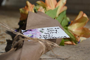 entrance — including one with a note that said, “I'm so very sorry.”