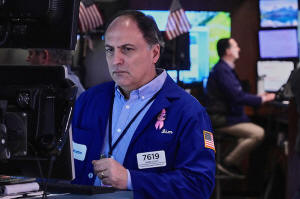 Trader James Conti works on the floor of the New York Stock