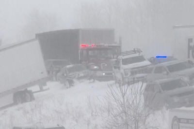 of the chain-reaction crash. Several towing companies responded