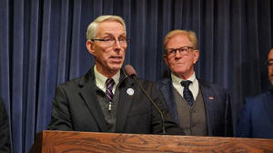 Republican state Rep. Mike Coffey held a news conference at the Illinois