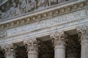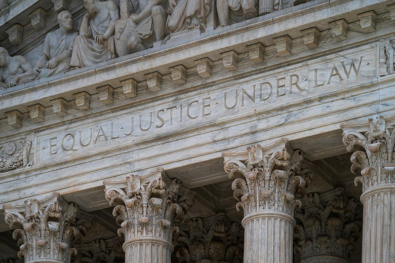 The west facade of the Supreme Court Building bears the motto "Equal Justice Under Law" on March 20, 2019, in Washington. (AP Photo/J. Scott Applewhite, File)