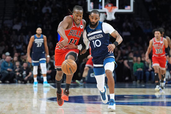 Chicago Bulls guard Ayo Dosunmu (11) and Minnesota Timberwolves