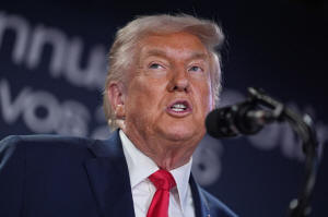 President Donald Trump speaks during a meeting of Global Business