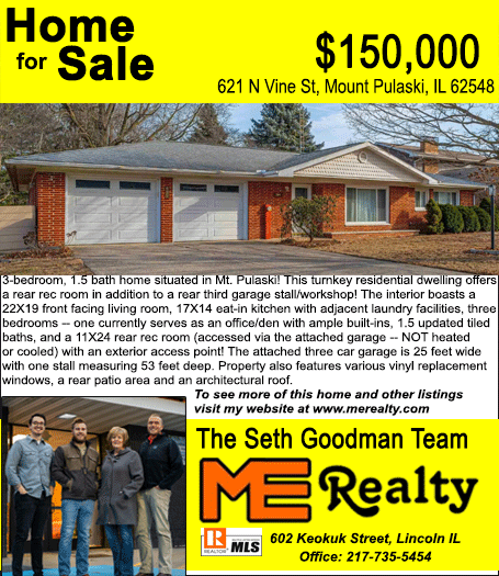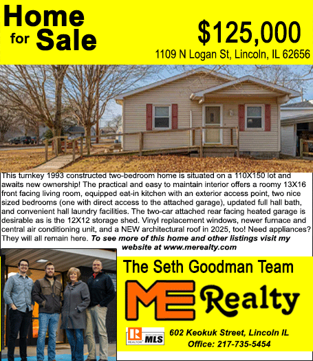 All real estate advertised in the Lincoln Daily News is subject to the Fair Housing Act for 1968 which makes it illegal to advertised "any preference, limitation, or discrimination based on race, color, religion, sex or national origin, or intention to make special preference, limitations, or discrimination."