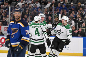 Feb. 8. Roope Hintz also scored and Jake Oettinger made 23 saves, as the