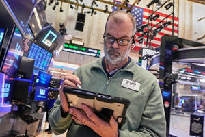 Trader William Lawrence works on the floor of the New York Stock