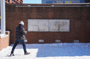 A person moves to photograph the location of the now removed