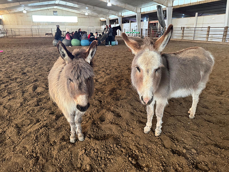 Mother-daughter mini donkeys are ready to work with clients at Red