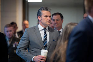 Defense Secretary Pete Hegseth arrives for a briefing for lawmakers