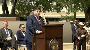 Illinois Gov. J.B. Pritzker speaks at the Peace Officers Memorial Service. BlueRoomStream / Screenshot