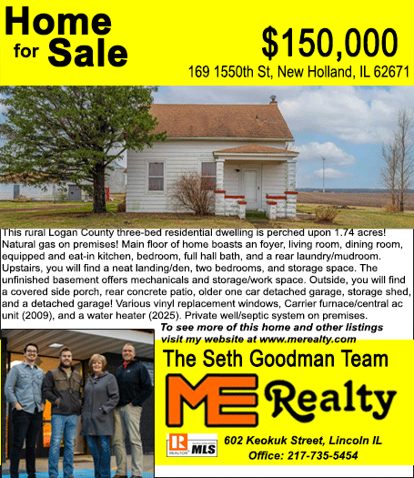 All real estate advertised in the Lincoln Daily News is subject to the Fair Housing Act for 1968 which makes it illegal to advertised "any preference, limitation, or discrimination based on race, color, religion, sex or national origin, or intention to make special preference, limitations, or discrimination."