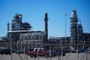 The BP Whiting Refinery is seen Monday, March 9, 2026, in Indiana. (AP Photo/Erin Hooley)