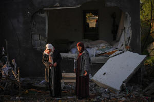 Residents inspect a house destroyed by an Iranian missile strike in