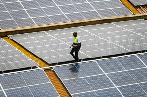 Mark Munyua, CP solar's technician, examines solar panels on the